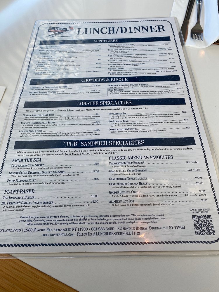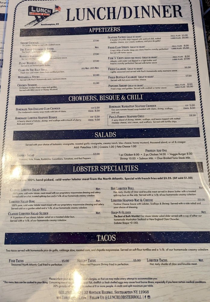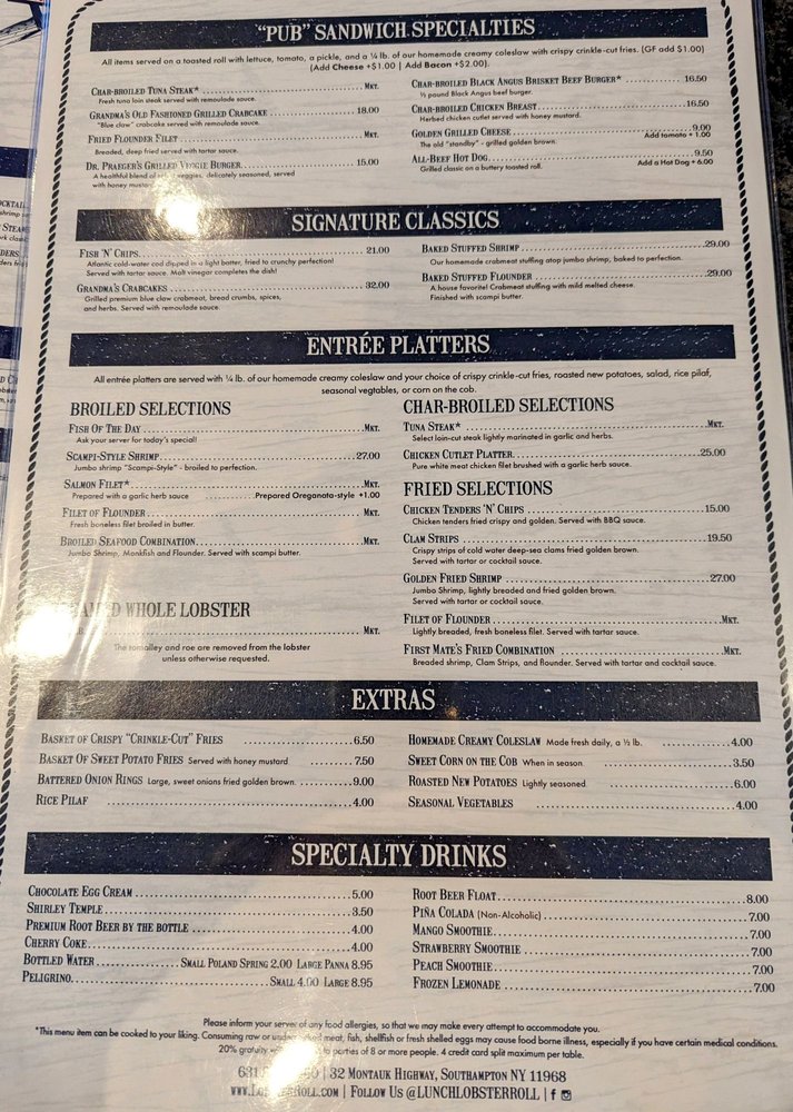 Lobster Roll Restaurant Southampton Menu (Update 2025)